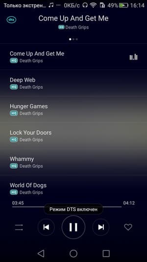 Звучит Honor 7 для своего уровня неплохо, но это не тот уровень, что у флагманского Huawei Mate S с его поистине выдающимся звучанием, хотя в рекламных проспектах упоминается наличие здесь отдельного аудиочипа NXP Smart PA второго поколения. Звучание у Honor 7 проще, внешний динамик издает достаточно скромный однотонный звук преимущественно на высоких нотах, богатством оттенков он не блещет, низких частот практически не слышно, хотя запаса громкости хватает практически для любой обстановки. В наушниках ситуация лучше. Здесь появляется возможность дополнительно включить технологию DTS, и задействовать ее стоит. От этого звучание в наушниках становится ярче и громче, хотя и здесь не покидает ощущение, что звук не кристально чист, вплетается некий шумовой фон. В целом для смартфона среднего ценового уровня звучание у Honor 7 вполне приемлемое, просто это не топовый уровень, что в общем-то и логично.
