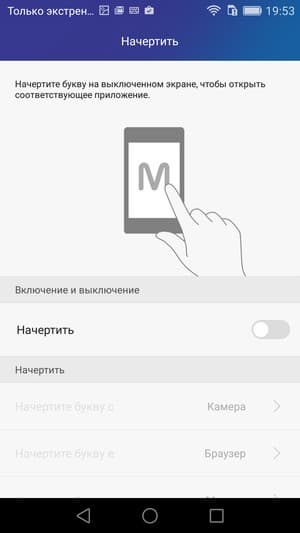 Интерфейс здесь точно такой же, как и в протестированных нами ранее флагманских моделях Huawei Mate S и Huawei P8. Из особенностей: есть поддержка работы с жестами — можно, например, нарисовать пальцем определенную букву английского алфавита пальцем на экране для одновременной разблокировки смартфона и запуска привязанной к жесту программы. Здесь, кстати, тоже можно использовать касание костяшками пальцев — например, для снятия снимка части изображения на экране. Предполагается, что костяшкой можно быстро обвести нужный сектор, вырезать и сохранить этот сегмент в качестве скриншота, однако на практике экран оказался настолько плохо оптимизированным для работы костяшками, что обводить приходится десятки раз, пока данная функция наконец не сработает — на флагманском Mate S эта технология, называемая Knuckle Sense, работает в разы быстрее и удобнее. Также имеется возможность голосовой разблокировки смартфона, но только на английском языке.