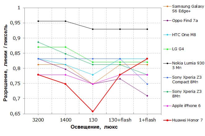 | Honor 7 (HiSilicon Kirin 935) | Huawei Mate S (HiSilicon Kirin 935) | Samsung Galaxy S6 edge+ (Exynos 7420) | Meizu MX5 (Mediatek MT6795Т) | OnePlus 2 (Qualcomm Snapdragon 810) | |
