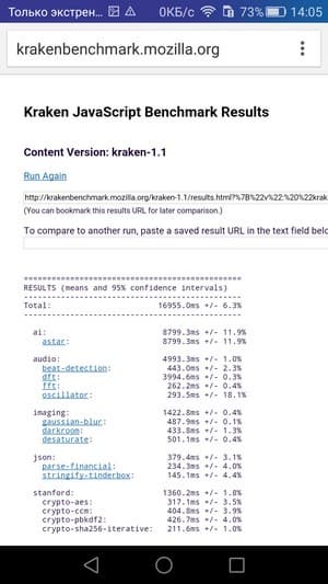 | Mozilla Kraken (мс, меньше — лучше) | 16955 | 15535 | 6534 | 17938 | 6518 |