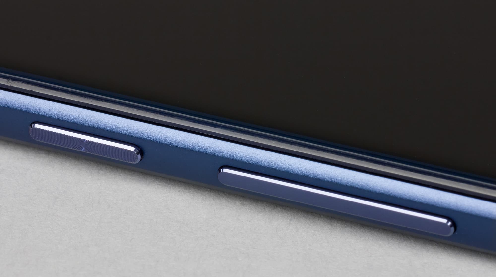 Аппаратные кнопки расположены на правой грани. Та, которая отвечает за питание и блокировку, имеет на своей поверхности мелкие насечки, отчего поверхность шероховатая. Другая кнопка, отвечающая за регулировку громкости, наоборот, совсем гладкая, так их легче различать не глядя. Клавиши довольно жесткие, они достаточно выпирают, чтобы легко находить их на ощупь.