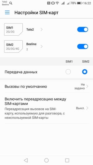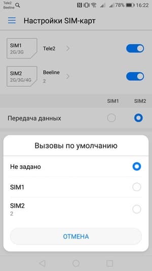 Интерфейс в смартфонах Huawei традиционно не предлагает заранее выбрать определенную карту для отправки SMS, это можно сделать только для голосовых вызовов и передачи данных. Работают карты в режиме Dual SIM Dual Standby, радиомодем здесь один. Карты в обоих слотах могут находиться в активном ожидании в 3G одновременно.