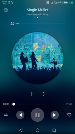 Для прослушивания музыки используется собственный проигрыватель со знакомым симпатичным интерфейсом, в котором, как обычно, никаких дополнительных ручных настроек нет — можно лишь включить или выключить целиком виртуальную систему DTS. В наушниках звук густой и насыщенный, а внешний динамик, естественно, выдает звук попроще: он чистый и громкий, но плоский и звонкий. Диктофон обладает хорошей чувствительностью, встроенное FM-радио в смартфоне отсутствует.
