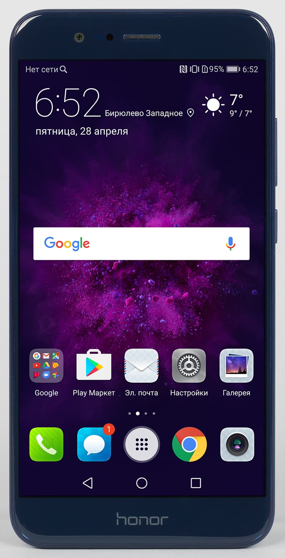 Экран у Honor 8 Pro темнее (яркость по фотографиям 106 против 120 у Nexus 7). Двоение отраженных объектов в экране Honor 8 Pro очень слабое, это свидетельствует о том, что между слоями экрана (конкретнее между внешним стеклом и поверхностью ЖК-матрицы) нет воздушного промежутка (экран типа OGS — One Glass Solution). За счет меньшего числа границ (типа стекло/воздух) с сильно различающимися коэффициентами преломления такие экраны лучше смотрятся в условиях интенсивной внешней засветки, но вот их ремонт в случае потрескавшегося внешнего стекла обходится гораздо дороже, так как менять приходится экран целиком. На внешней поверхности экрана есть специальное олеофобное (жироотталкивающее) покрытие, которое по эффективности даже лучше, чем у Nexus 7, поэтому следы от пальцев удаляются существенно легче, а появляются с меньшей скоростью, чем в случае обычного стекла.