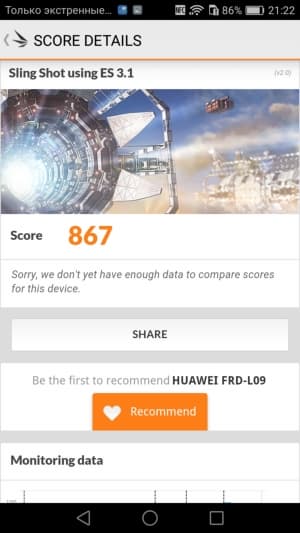 Kirin 950 — платформа топового уровня, это практически та же флагманская Kirin 955, только тут максимальная рабочая частота старших ядер Cortex-A72 уменьшена с 2,5 до 2,3 ГГц. Все остальное — то же самое, в том числе видеоядро Mali-T880 и сопроцессор i5, ответственный за работу датчиков Honor 8. Платформа гораздо мощнее, чем Kirin 650, которую установили в Huawei P9 Lite, очень большой отрыв виден во всех без исключения тестах. В комплексных тестах SoC Kirin 950 демонстрирует высокие результаты, хотя они не максимальны. Флагманами рынка мобильных платформ остаются топовые SoC Qualcomm и Samsung, их превосходство над Kirin 950/955 особенно проявляется в графических тестах. Тем не менее, производительности героя обзора должно хватать для выполнения любых задач, в том числе и достаточно требовательных игр.
