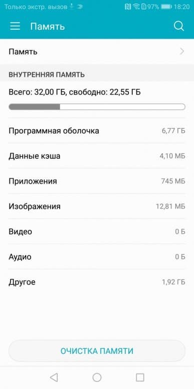Смартфон поставляется с новой операционной системой Android 8.0 Oreo и фирменным интерфейсом EMUI, который обновлен до версии 8.0.