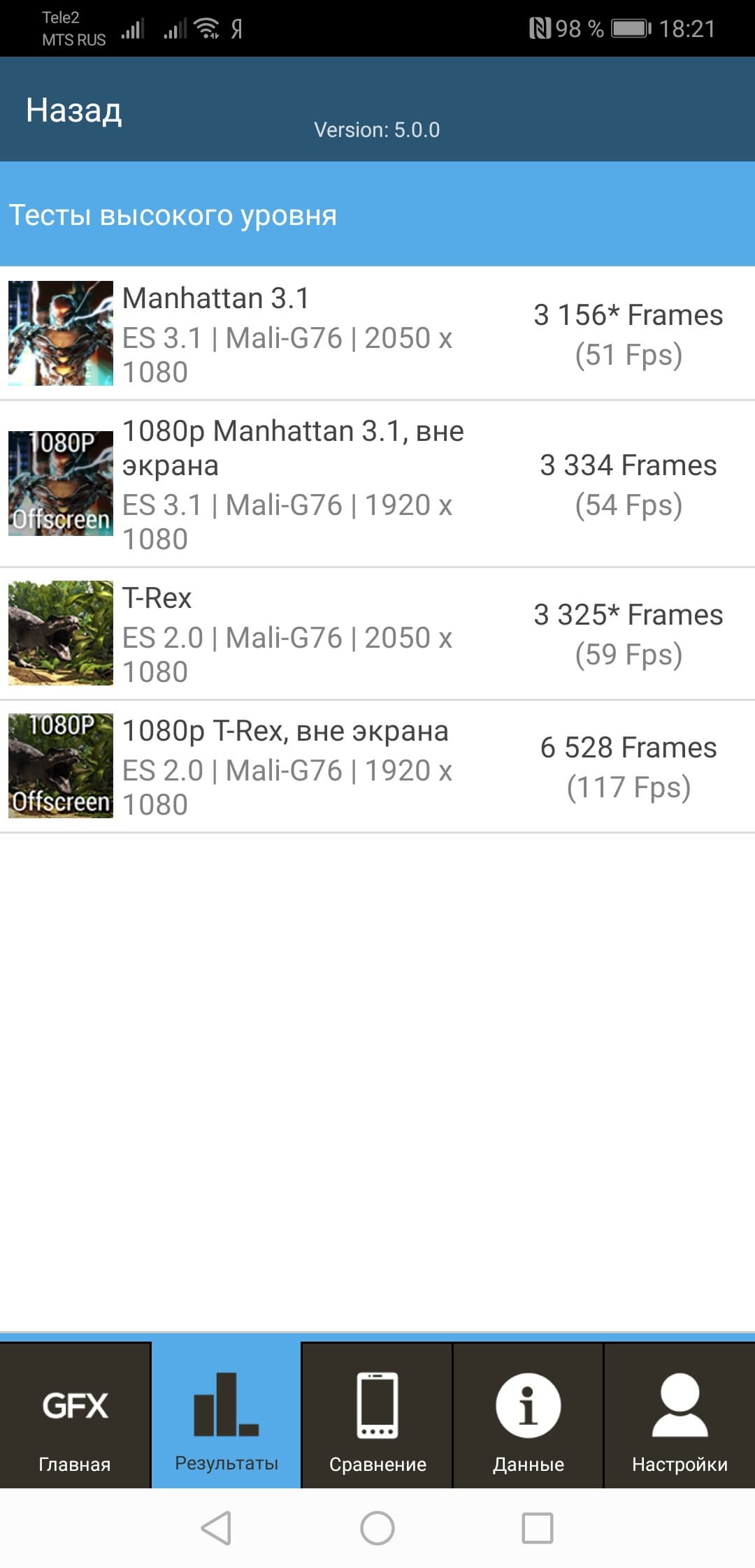 | GFXBenchmark Manhattan ES 3.1 (1080p Offscreen, fps) | 54 | 55 | 23 | 45 | 22 |
