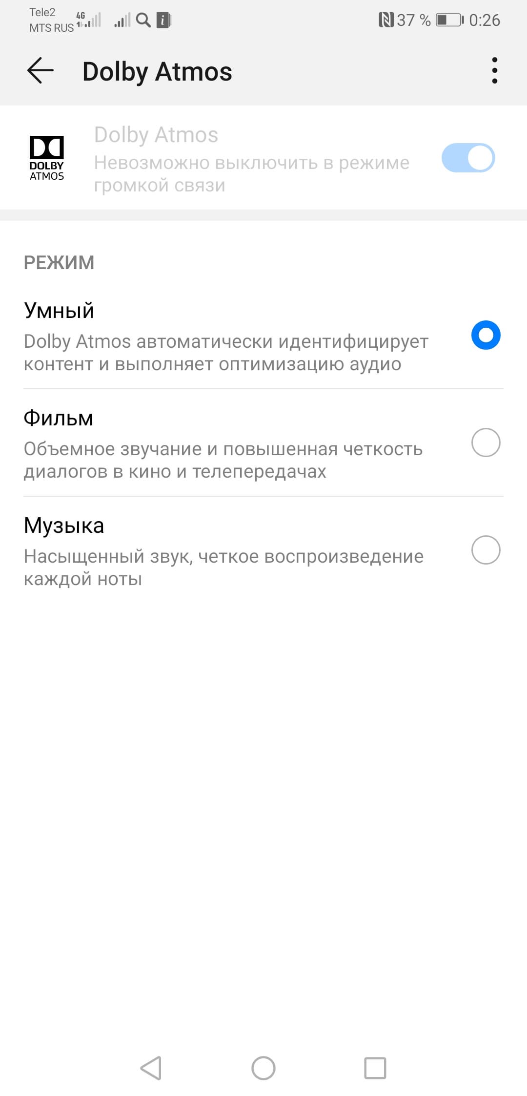 Через беспроводные наушники с помощью Bluetooth смартфон умеет воспроизводить аудио в качестве Hi-Res благодаря поддержке беспроводного кодека LDAC. Поддержка Qualcomm aptX HD тоже есть. Система Dolby Atmos позволяет выбирать профили, но без возможности отдельных регулировок. В целом, и в наушниках и через стереодинамики смартфон звучит достойно: звук чистый, громкий, насыщенный. Любопытно, что динамик в нижнем торце выведен за традиционный ряд отверстий, тогда как у старшей модели звук выходит прямо через отверстие разъема USB Type-C. Зато тут есть 3,5-миллиметровый аудиовыход, и, как и у Mate 20 Pro, динамики работают в стереорежиме.