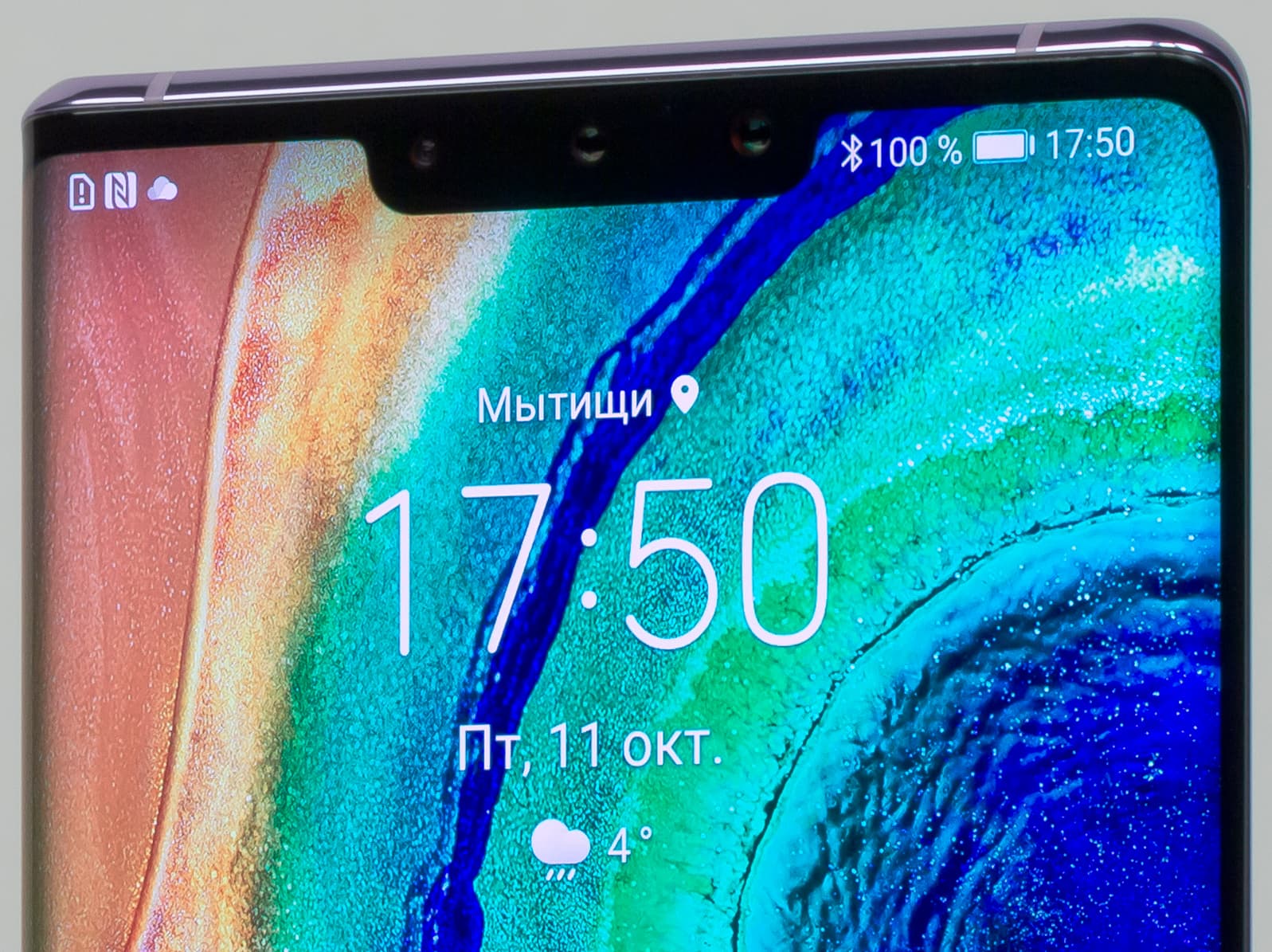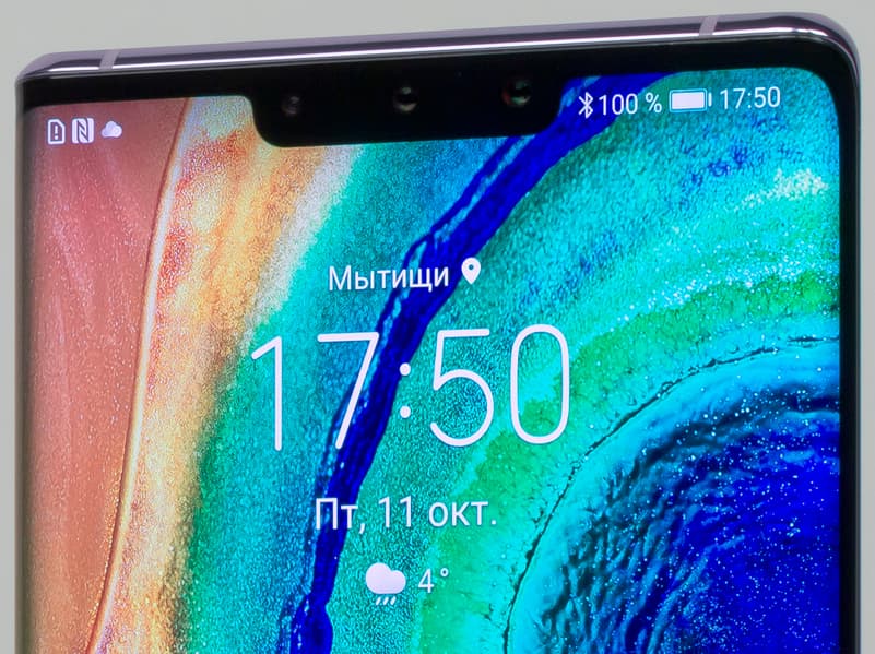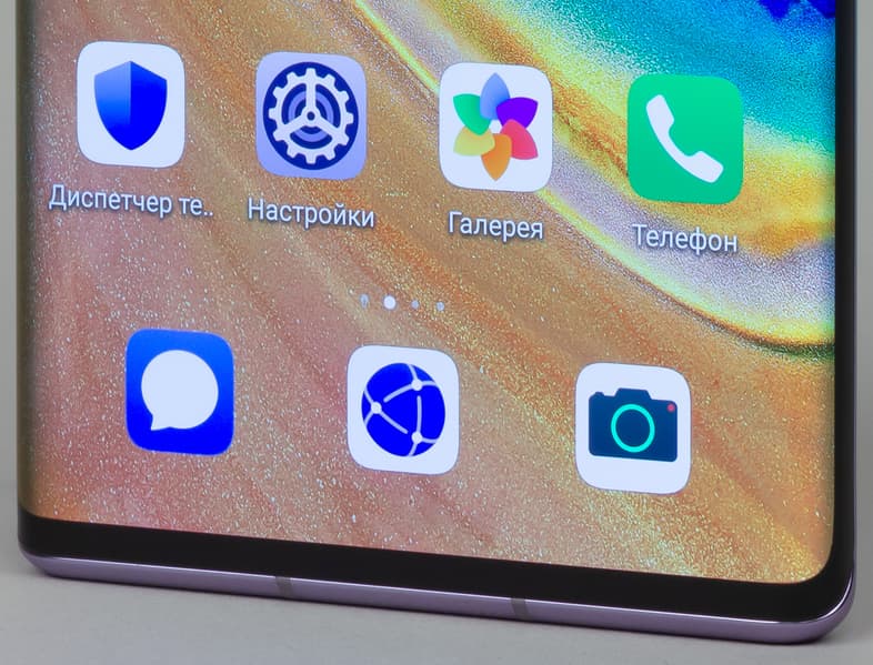 Цветопередача хорошая, цвета в меру насыщенные, цветовой баланс у экранов немного различается. Напомним, что фотография не может служить надежным источником сведений о качестве цветопередачи и приводится только для условной наглядной иллюстрации. В частности, выраженный красноватый оттенок белого и серого полей, присутствующий на фотографиях экрана Huawei Mate 30 Pro, при перпендикулярном взгляде визуально отсутствует, что подтверждается аппаратными тестами с помощью спектрофотометра. Причина в том, что спектральная чувствительность матрицы фотоаппарата неточно совпадает с этой характеристикой человеческого зрения. Заметим, что в данном случае картинка занимает в высоту (при ландшафтной ориентации экрана) всю доступную для вывода изображения область и заходит на загнутые края экрана, что приводит к легкому затемнению и искажению цвета. Также на свету эти области почти всегда бликуют, что еще больше мешает при просмотре изображений, выведенных на весь экран. И даже картинка фильмов с соотношением сторон 16:9 заходит на загибы, что очень не к месту в случае видео.