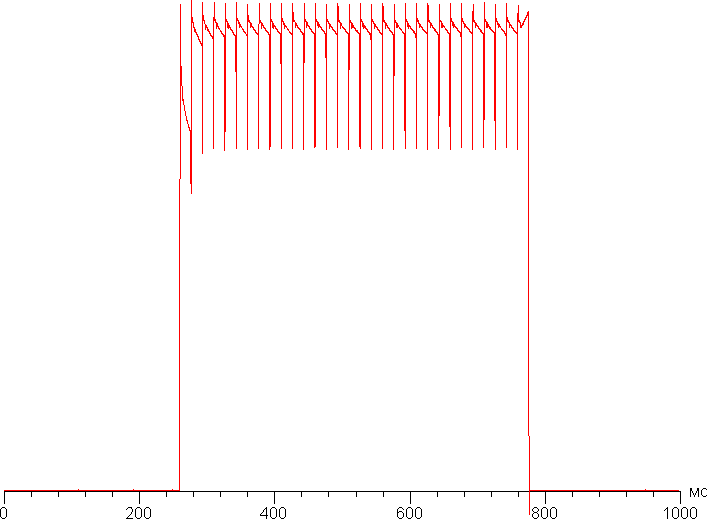 Переключение состояния элементов матрицы выполняется практически мгновенно, но на фронте включения может присутствовать ступенька шириной примерно 17 мс (что соответствует частоте обновления экрана в 60 Гц). Например, так выглядит зависимость яркости от времени при переходе от черного к белому и обратно: