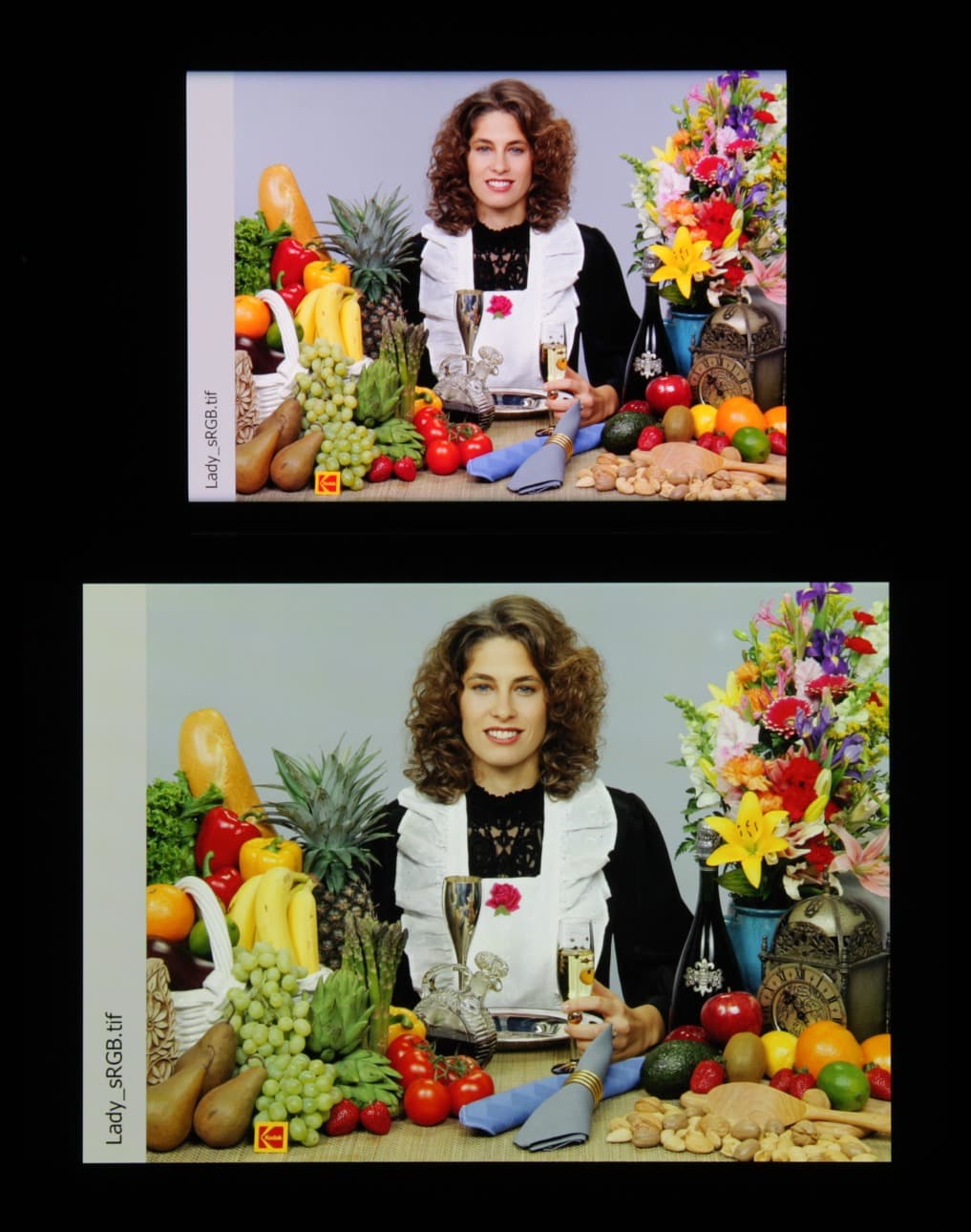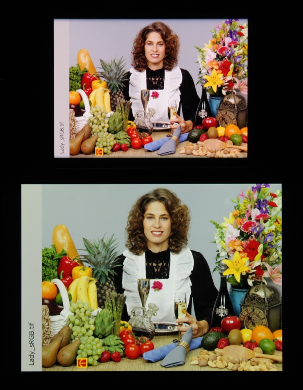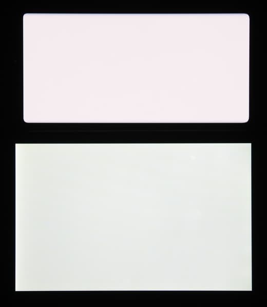 Отметим хорошую равномерность яркости и цветового тона белого поля (за исключением едва видимого затемнения и изменения оттенка к загнутым краям).