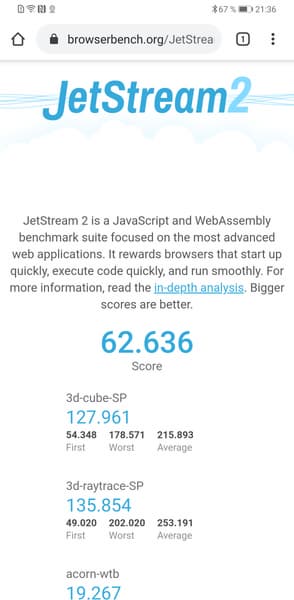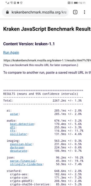 | Mozilla Kraken (мс, меньше — лучше) | 2267 | 4080 | 1887 | 2027 | 2375 |