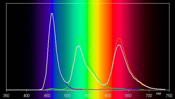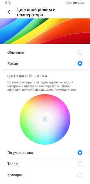К примеру, мы ее активировали и поместили смартфон под светодиодные светильники с холодным белым светом, получив в итоге значения 2,8 для ΔE и 6100 К для цветовой температуры. Под галогеновой лампой накаливания (теплый свет) — 3,5 и 5200 К соответственно, то есть цветовая температура стала ниже. Функция работает так, как и ожидалось. Отметим, что сейчас сложившимся стандартом является калибровка устройств отображения к точке белого в 6500 К, но в принципе, коррекция под цветовую температуру внешнего света может принести пользу, если хочется добиться лучшего соответствия изображения на экране тому, что видно на бумаге (или на любом носителе, на котором цвета формируются за счет отражения падающего света) в текущих условиях. В случае потребительского устройства надобность в данной функции нулевая, но раз один из лидеров рынка ее недавно ввел, то и другому лидеру пришлось подтянуться.