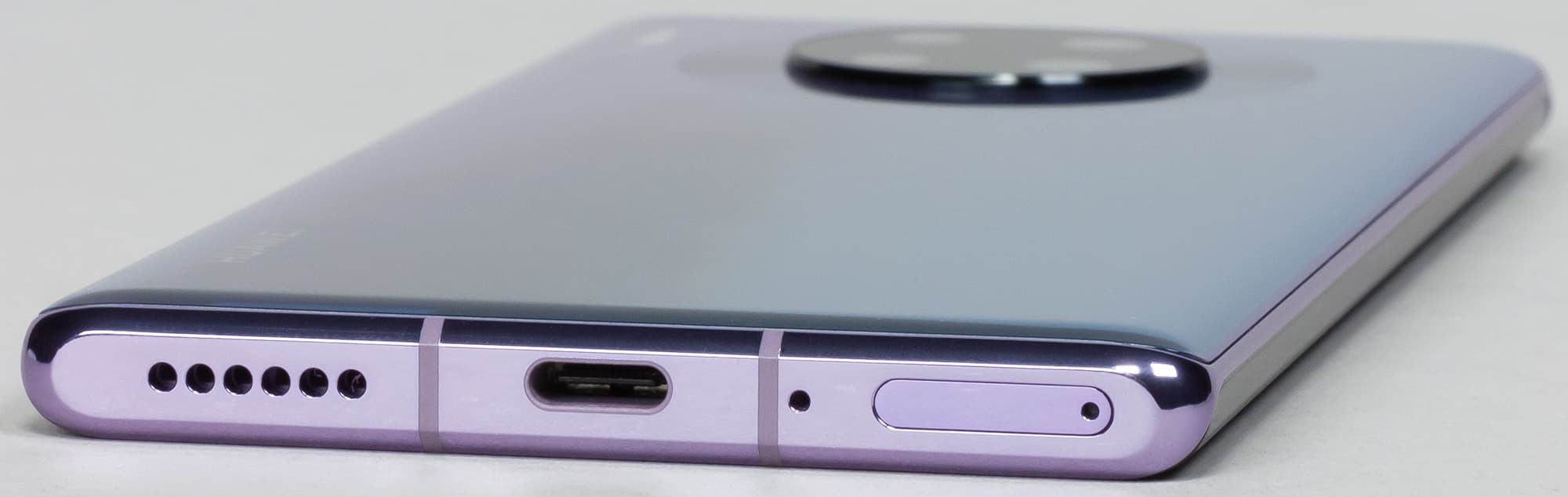 В нижнем торце установлены динамик, разъем USB Type-C, микрофон, а также разъем для установки карточек. 3,5-миллиметровый выход для наушников отсутствует.