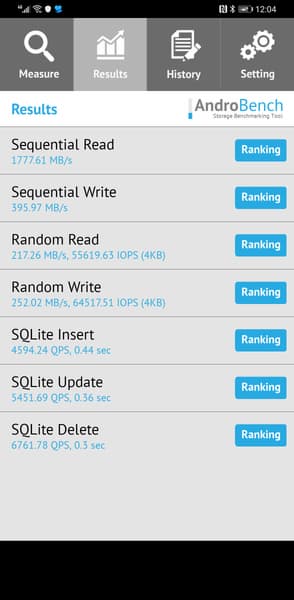 Результаты теста AndroBench на скорость работы с памятью: