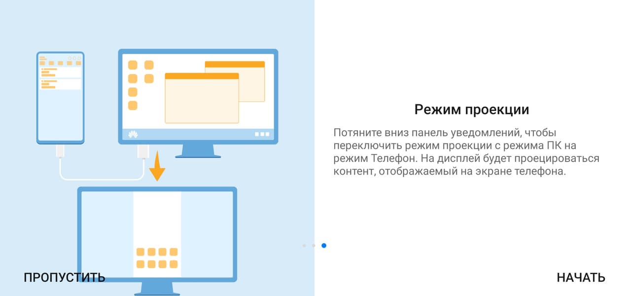 Не все приложения гарантированно могут работать корректно в таком режиме. Управляющая панель в нижней части экрана убирается при выводе изображения на весь экран (например, при воспроизведении видео). Вывод осуществляется уже в истинном разрешении 1920×1080 и точка в точку. Отметим, что одновременно с выводом изображения и звука можно по USB подключать к смартфону мышь и клавиатуру (переключение раскладки — Ctrl+пробел), USB-флешки и т. д., превращая смартфон в основу для рабочего места, но для этого адаптер или монитор (имеющий вход USB Type-C) должны допускать подключение внешних USB-устройств (то есть иметь USB-концентратор). Для зарядки смартфона к адаптеру/док-станции потребуется подключить зарядное устройство, а мониторы со входом USB Type-C обычно сами подают питание на смартфон. В режиме рабочего стола на внешнем мониторе можно параллельно работать на самом смартфоне, то есть получается два рабочих стола одновременно, но вывод видео в режиме аппаратного декодирования осуществляется только на один экран, также одна и та же программа не может работать и там, и там.