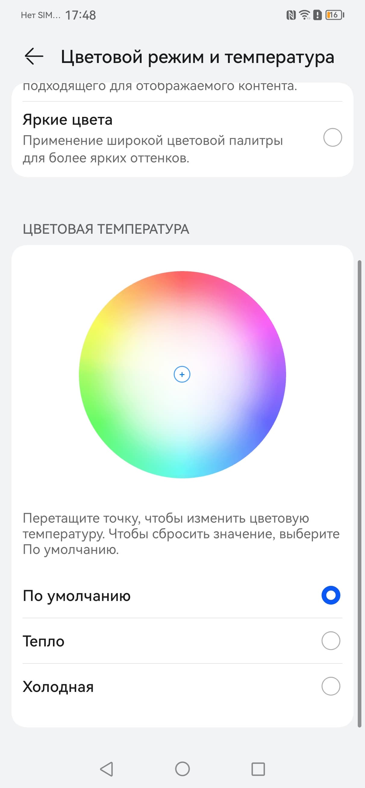 Фотография выше получена при активном профиле Обычные цвета (он выбран по умолчанию) в настройках экрана, всего их два: