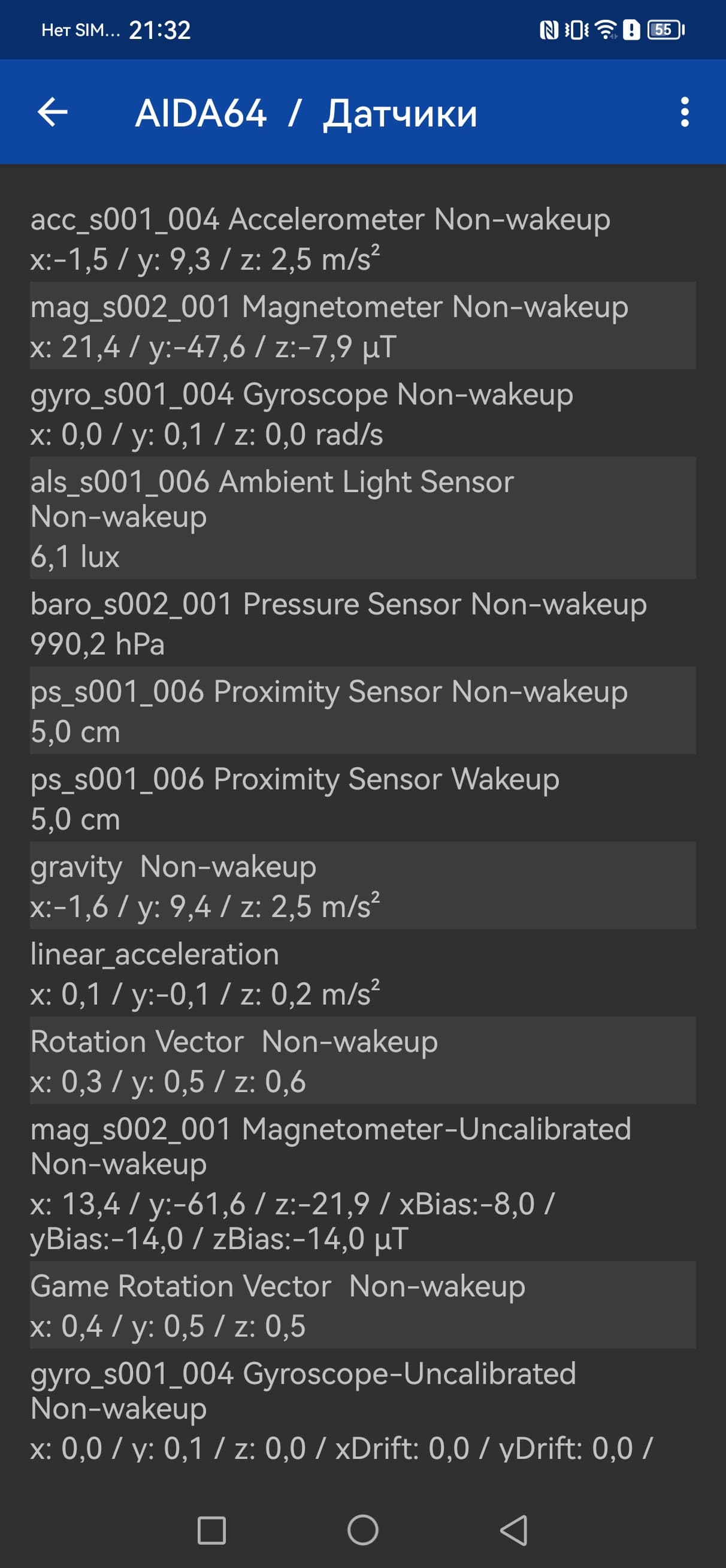 - Датчики приближения и освещения, магнитного поля, акселерометр, гироскоп, барометр