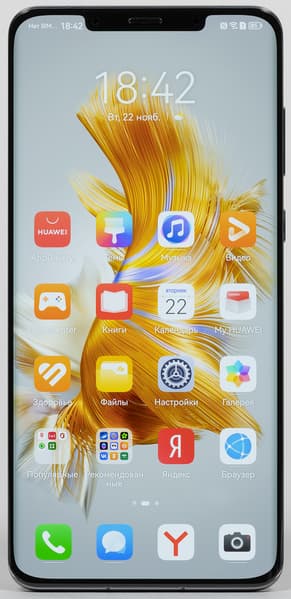 Цветопередача хорошая, цвета в меру насыщенные, цветовой баланс у экранов немного различается. Напомним, что фотография не может служить надежным источником сведений о качестве цветопередачи и приводится только для условной наглядной иллюстрации. В частности, выраженный красноватый оттенок белого и серого полей, присутствующий на фотографиях экрана Huawei Mate 50 Pro, при перпендикулярном взгляде визуально отсутствует, что подтверждается аппаратными тестами с помощью спектрофотометра. Причина в том, что спектральная чувствительность матрицы фотоаппарата неточно совпадает с этой характеристикой человеческого зрения. Заметим, что в данном случае картинка занимает в высоту (при ландшафтной ориентации экрана) всю доступную для вывода изображения область и заходит на загнутые края экрана, что приводит к легкому затемнению и искажению цвета. Также на свету эти области почти всегда бликуют, что еще больше мешает при просмотре изображений, выведенных на весь экран. И даже картинка фильмов с соотношением сторон 16:9 заходит на загибы, что очень не к месту в случае видео.
