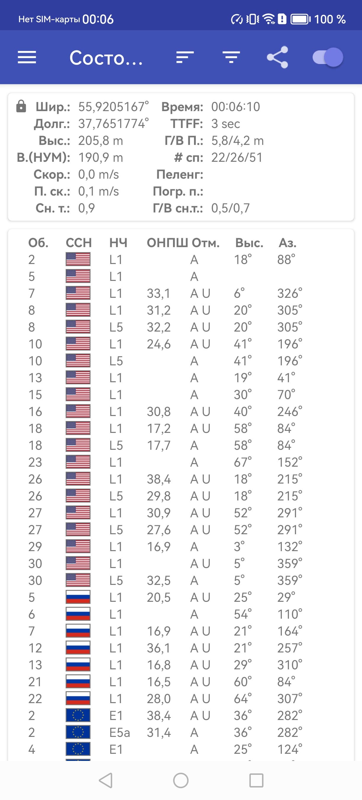 Двухдиапазонный (двухчастотный) навигационный модуль работает с GPS (с A-GPS), Глонасс, Beidou, Galileo и QZSS. Первые спутники при холодном старте обнаруживаются быстро. Все необходимые встроенные датчики установлены.