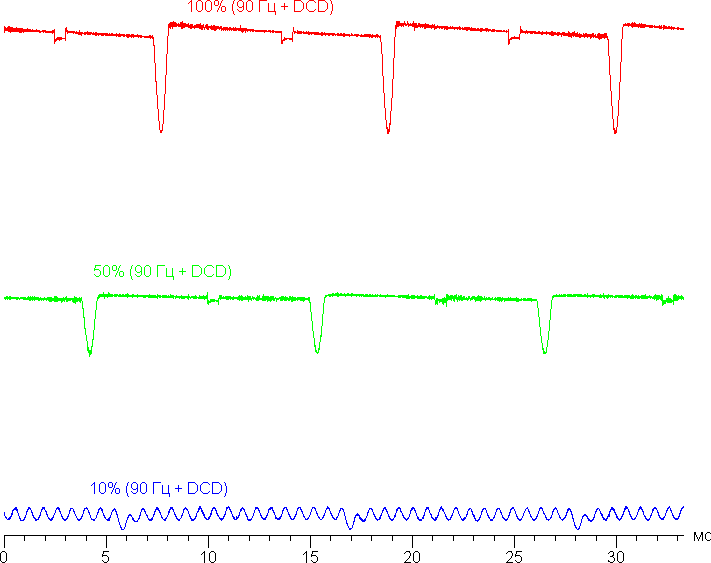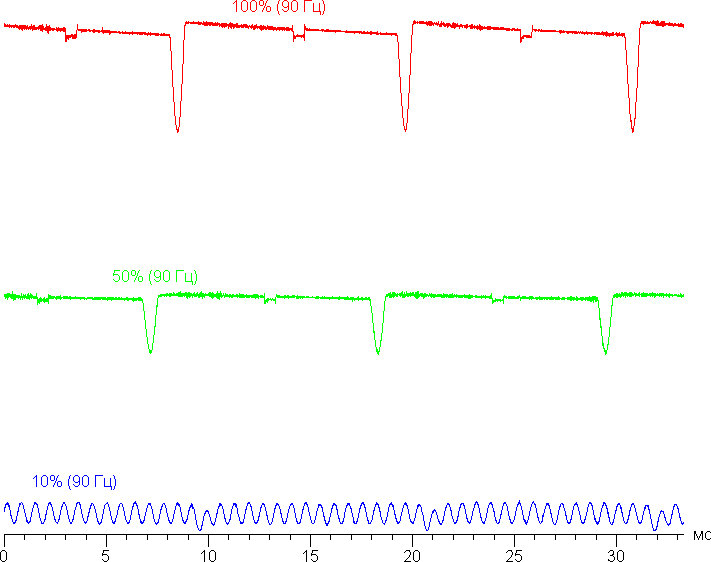 Видно, что на высокой и средней яркости частота модуляции увеличилась в 1,5 раза, а на низкой яркости характер модуляции принципиально не изменился.