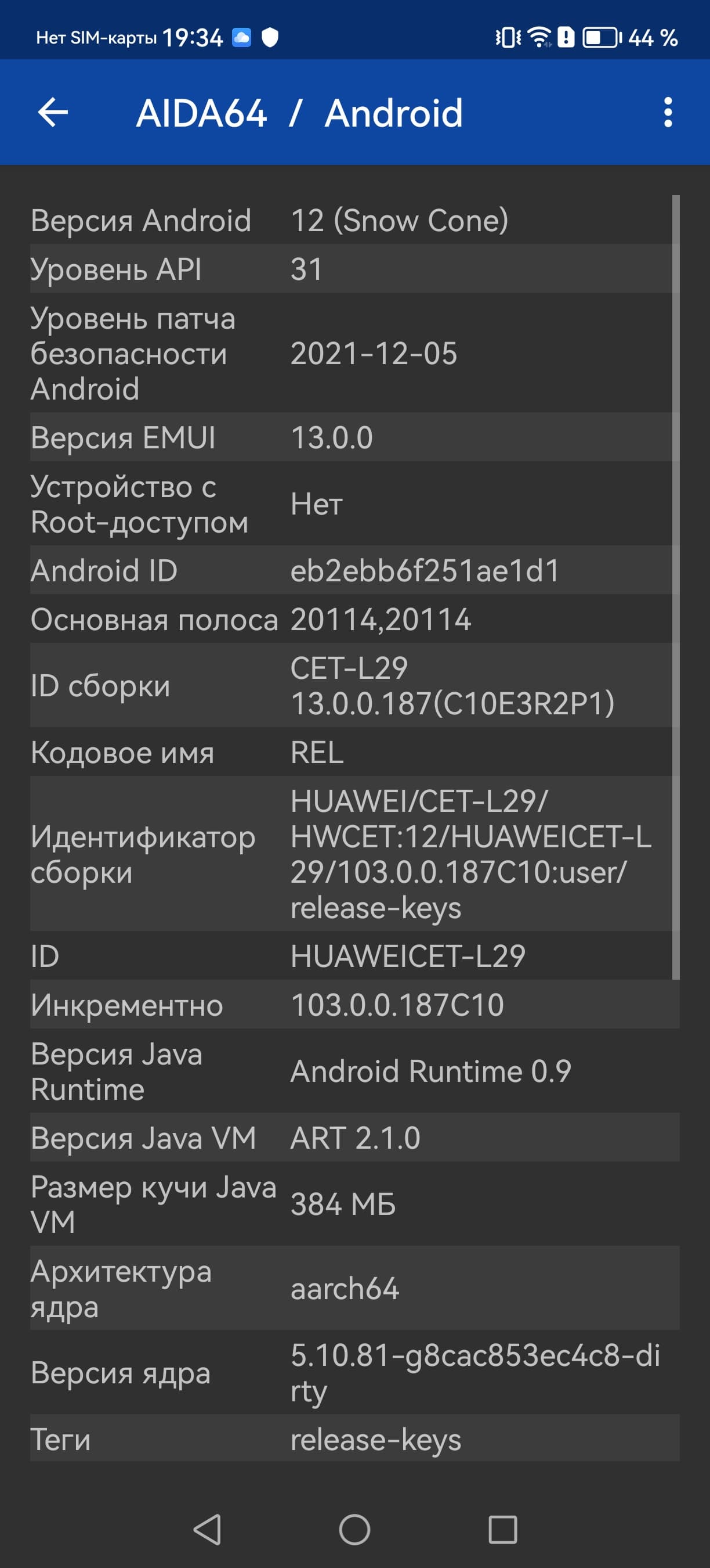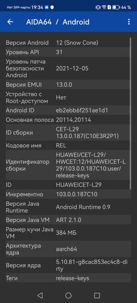 - Операционная система Android 12, EMUI 13