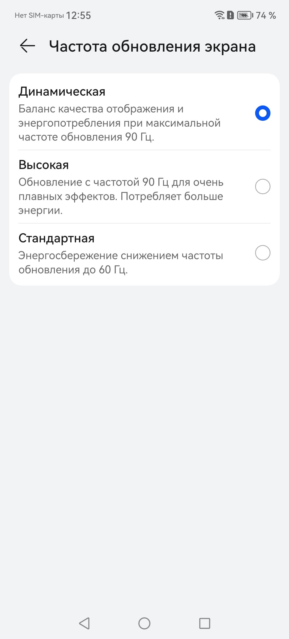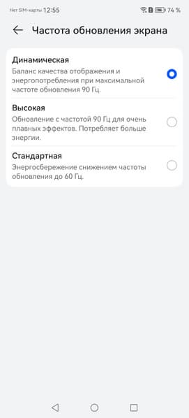 В настройках экрана можно включить режим с повышенной до 90 Гц частотой обновления: