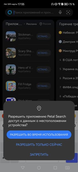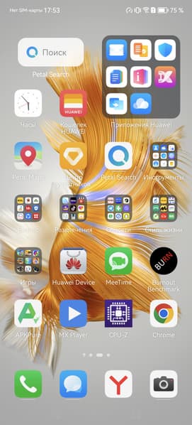 В смартфоне используется проверенная годами оболочка EMUI 13, основанная на Android 12. Конечно же, без доступа к сервисам Google. Вместо этого имеется собственный магазин приложений AppGallery с достаточно широким ассортиментом программ и игр. Знатоки смогут поискать установочные файлы через сервис поиска APK-файлов Petal Search. Этот сервис настолько интегрирован в прошивку, что используется для строки поиска на главной странице — там, где у остальных Android-смартфонов находится строчка поиска Google.