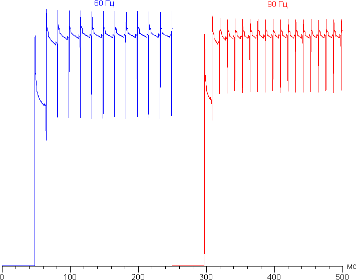 В режиме 90 Гц плавность прокрутки заметно повышается. Посмотрим, изменится ли при этом характер модуляции: