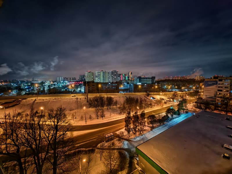 В ночном режиме детализация остается довольно высокой, шумов почти нет — пока речь идет об использовании основного модуля. Съемка ночью с зумом и на широкий угол возможна, но качество уже, конечно, не то.