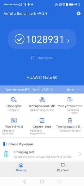 SoC Snapdragon 8 Gen1 (SM8450) — пока еще флагманская мобильная платформа Qualcomm. Это максимально мощная платформа, которая была представлена 1 декабря 2021 года и производится по нормам техпроцесса 4 нм. Процессор основан на новейшей архитектуре ARMv9 и демонстрирует высочайшие результаты в синтетических тестах, однако в случае Huawei Mate 50 его производительность искусственно занижается автоматически, дабы не перегревался корпус. Тем не менее, в реальной эксплуатации недостатка в производительности пользователь уж точно не ощутит.