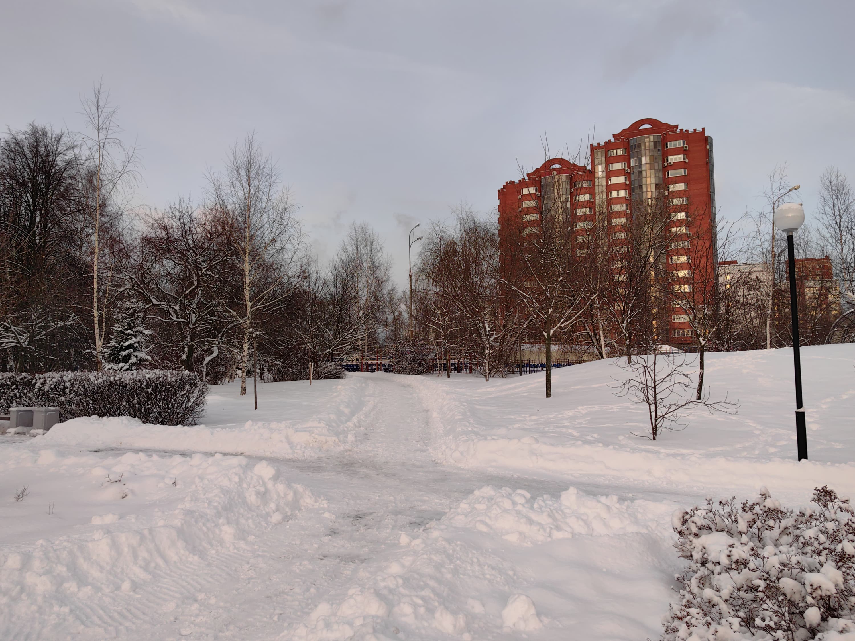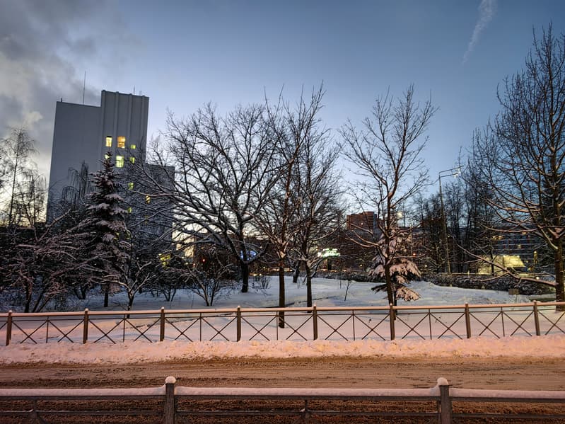 Снабженная автофокусом широкоугольная камера также обеспечивает высокую детализацию с хорошей резкостью и четкостью картинки. Нет ни пересветов, ни завалов в тенях. И это в принципе одна из лучших сверхширокоугольных камер в смартфонах, если закрыть глаза на «плавающий» баланс белого, который и тут частенько заваливается в красный. Возможно, это будет исправлено в будущих прошивках (когда в Китае начнет подолгу лежать снег).