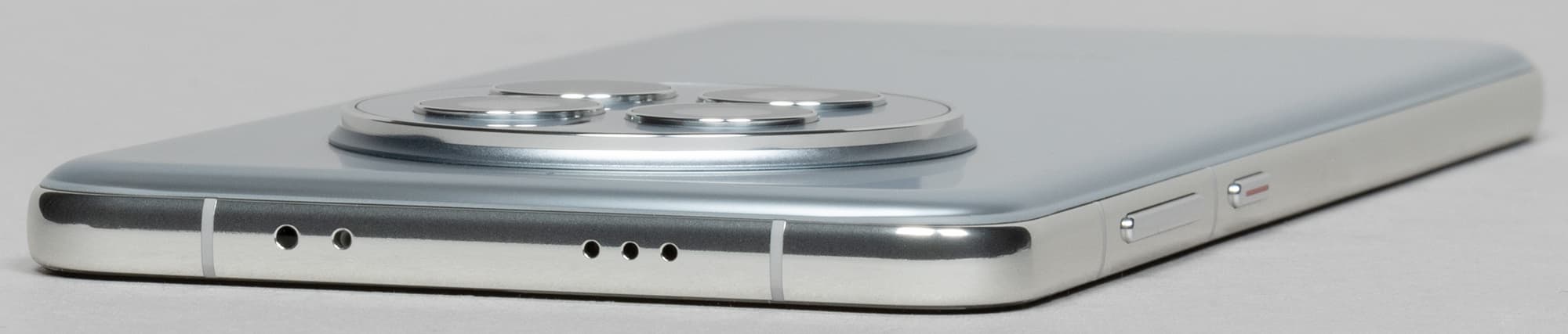 Дизайн Huawei Mate 50 находится «на стыке» между уже устаревающим обтекаемым и современным с плоской боковой рамкой. Это, как ни странно, пошло только на пользу: задняя стенка всё еще немного закруглена к краям и плавно переходит в боковую рамку, но сама рамка довольно широкая и почти плоская. За счет ее ширины аппарат надежно удерживается в руке и не прокручивается в ладони, а отсутствие совсем уж резких переходов между гранями не позволяет рамке врезаться в кожу.