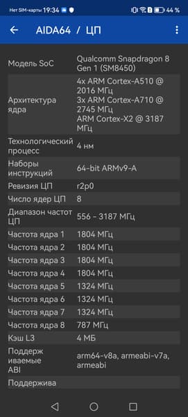 - SoC Qualcomm SM8450 Snapdragon 8 Gen1, 8 процессорных ядер (1×Cortex-X2 @3,00 ГГц + 3×Cortex-A710 @2,50 ГГц + 4×Cortex-A510 @1,80 ГГц)