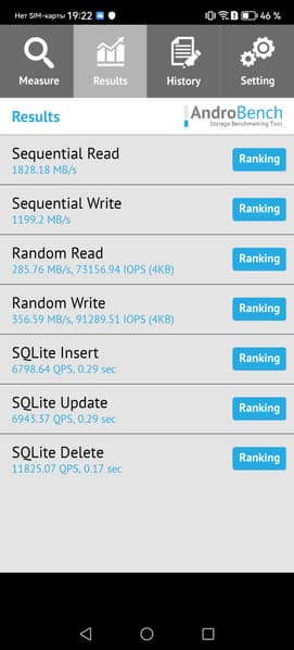 Результаты теста AndroBench на скорость работы с памятью: