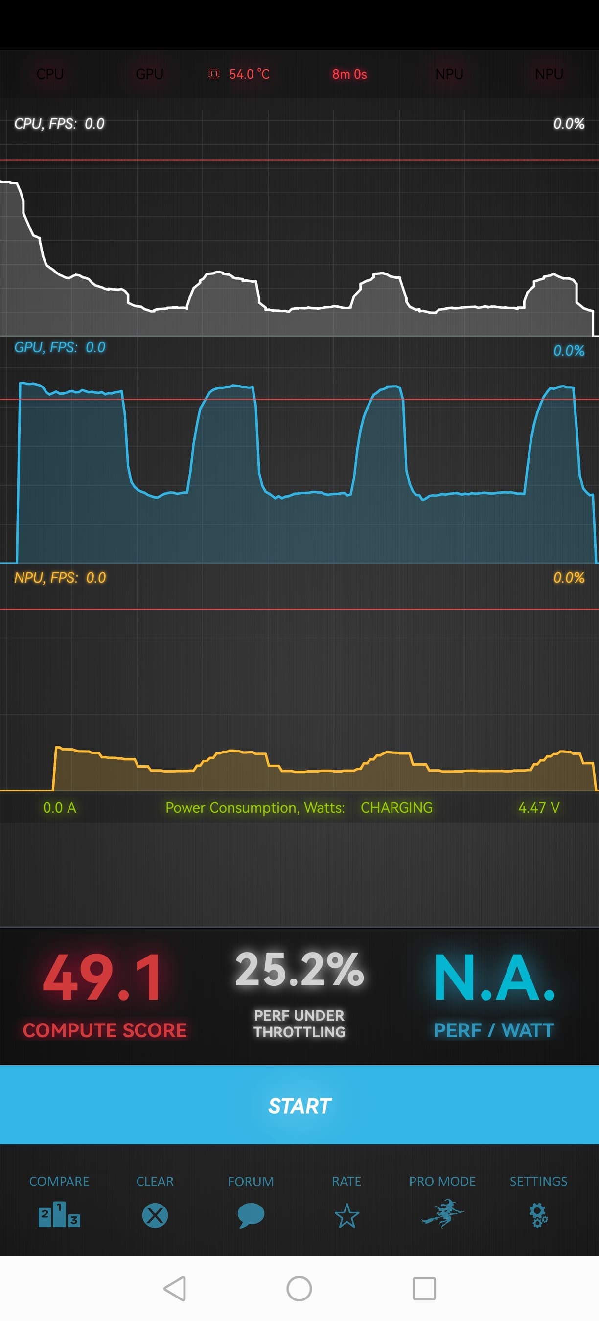 Этот смартфон явно склонен к сильному снижению производительности под большой нагрузкой.