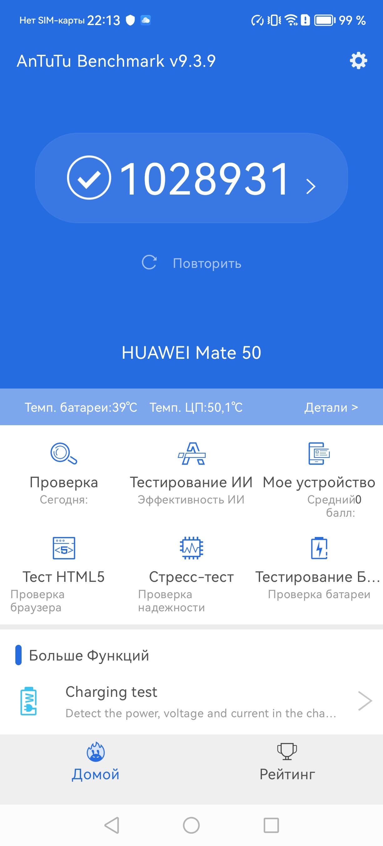 | AnTuTu (v9.x) (больше — лучше) | 1028931 | 801412 | 870250 | 727479 | 651541 |