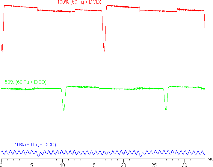 В англоязычной литературе и в новостях обычно используют название DC Dimming (на графиках сократим до DCD). Впрочем, при включении этой функции принципиальных изменений нет. Режим с частотой обновления 60 Гц: