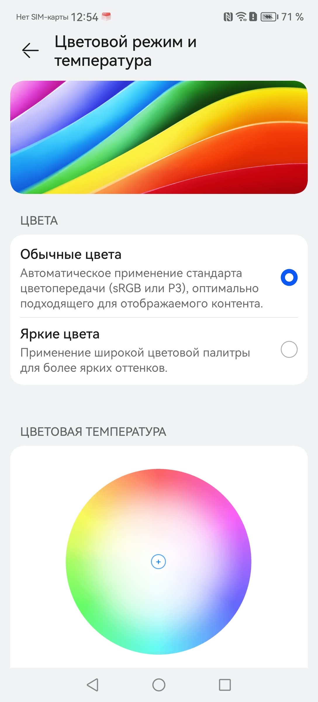 Фотография выше получена при активном профиле Обычные цвета (он выбран по умолчанию) в настройках экрана, всего их два: