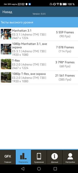 | GFXBenchmark T-Rex (Onscreen, fps) | 68 | 119 | 118 | 120 | 118 |
