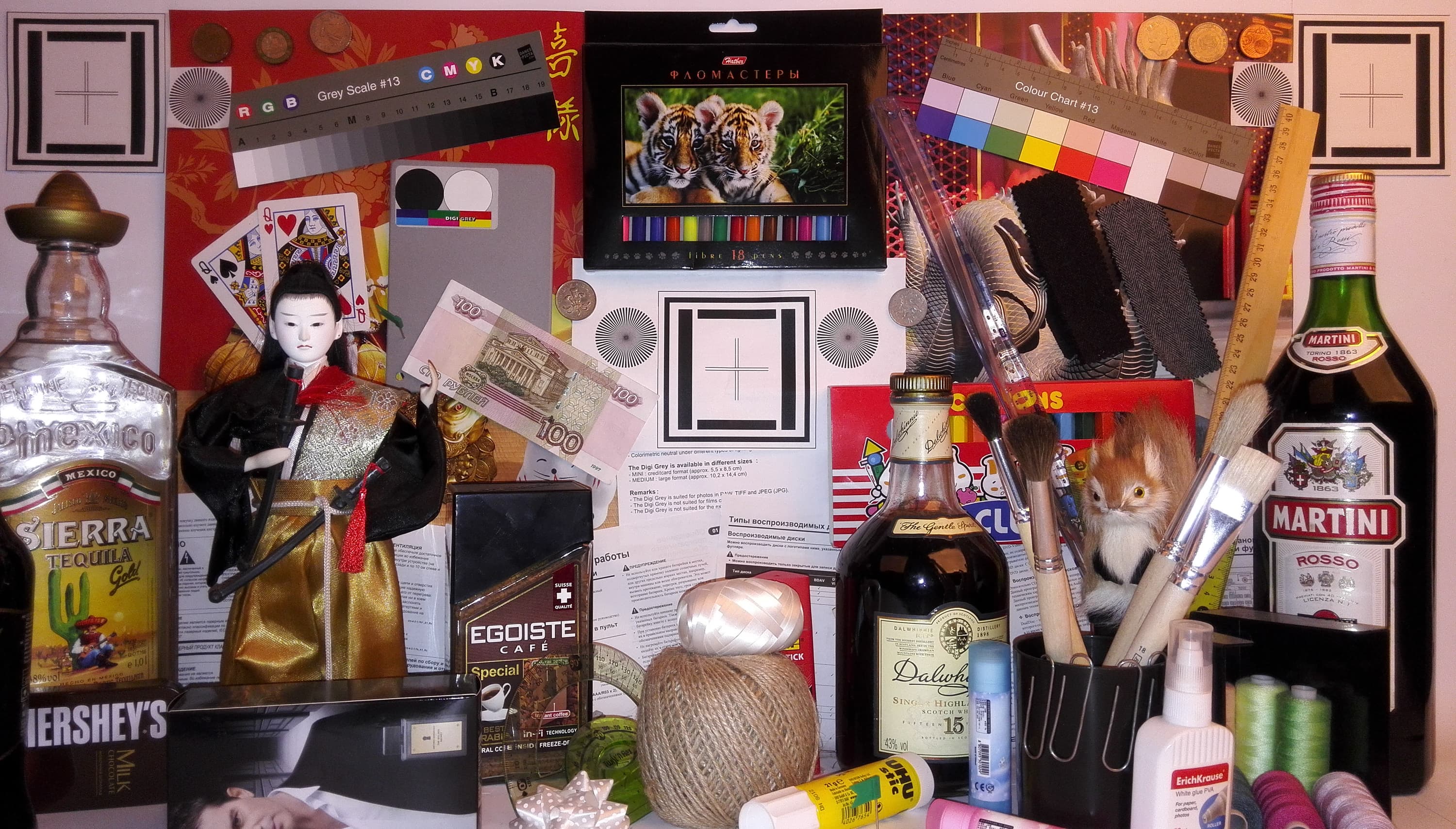 Еще одной возможностью изменить изображение является опция Яркие цвета. При ее включении гамма-кривая приобретает слегка выраженный S-образный характер, а насыщенность цветов (вернее цветовой контраст) заметно повышается (без изменения охвата, но с исчезновением градаций в области насыщенных цветов). Фотография ниже показывает тестовое изображение после такой коррекции в сравнении все с тем же Google Nexus 7 (2013):