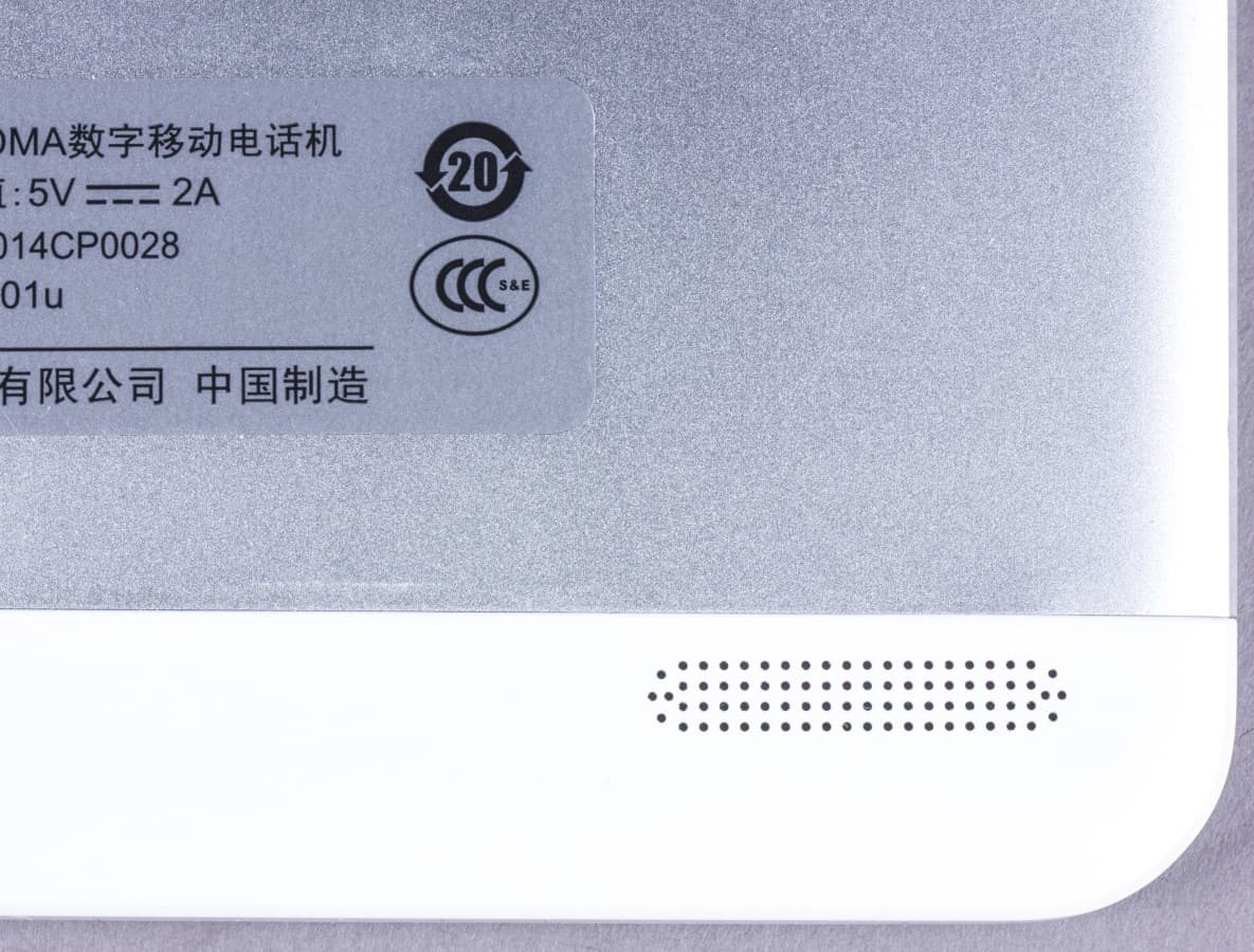 Центральная часть тыловой панели изготовлена из металла. С двух сторон ее обрамляют белые пластиковые вставки, примерно так же, как в iPhone. Верхняя содержит объектив камеры и вспышку, а в углу нижней находится тыловой динамик. Не слишком удачное решение. Однако на столе тыловой динамик не приглушается, обеспечивая довольно высокий уровень громкости и хорошее качество звука.