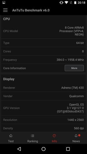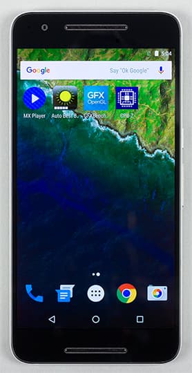 | Huawei Nexus 6P (Qualcomm Snapdragon 810) | LG Nexus 5X (Qualcomm Snapdragon 808) | Meizu Pro 5 (Exynos 7420) | Huawei Mate S (HiSilicon Kirin 935) | LeTV 1s (Mediatek MT6795T) | |