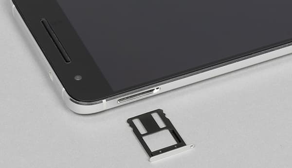 Nexus 6P не имеет съемных элементов, его цельнометаллический корпус монолитен, так что не приходится говорить о каких-либо скрипах, прогибах задней стенки и тому подобном, их здесь просто не может быть. Из такого строения корпуса следует и привычный вариант установки SIM-карты: она вставляется в боковой слот, въезжая в него на металлических салазках. Используется формат Nano-SIM, поддерживается горячая замена.