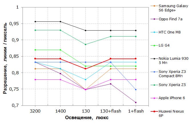Несмотря на невысокое по меркам нынешних флагманов максимальное разрешение, камера получилась очень достойной. Недостатков у нее практически нет, хотя шарпинг и небольшое падение резкости к краям кадра огорчают. В центральной же части кадра разрешение достаточно высокое, вполне на уровне лучших флагманов. И при этом оно не сильно падает с ухудшением освещения. В целом камера отлично справится с документальной и художественной съемкой.