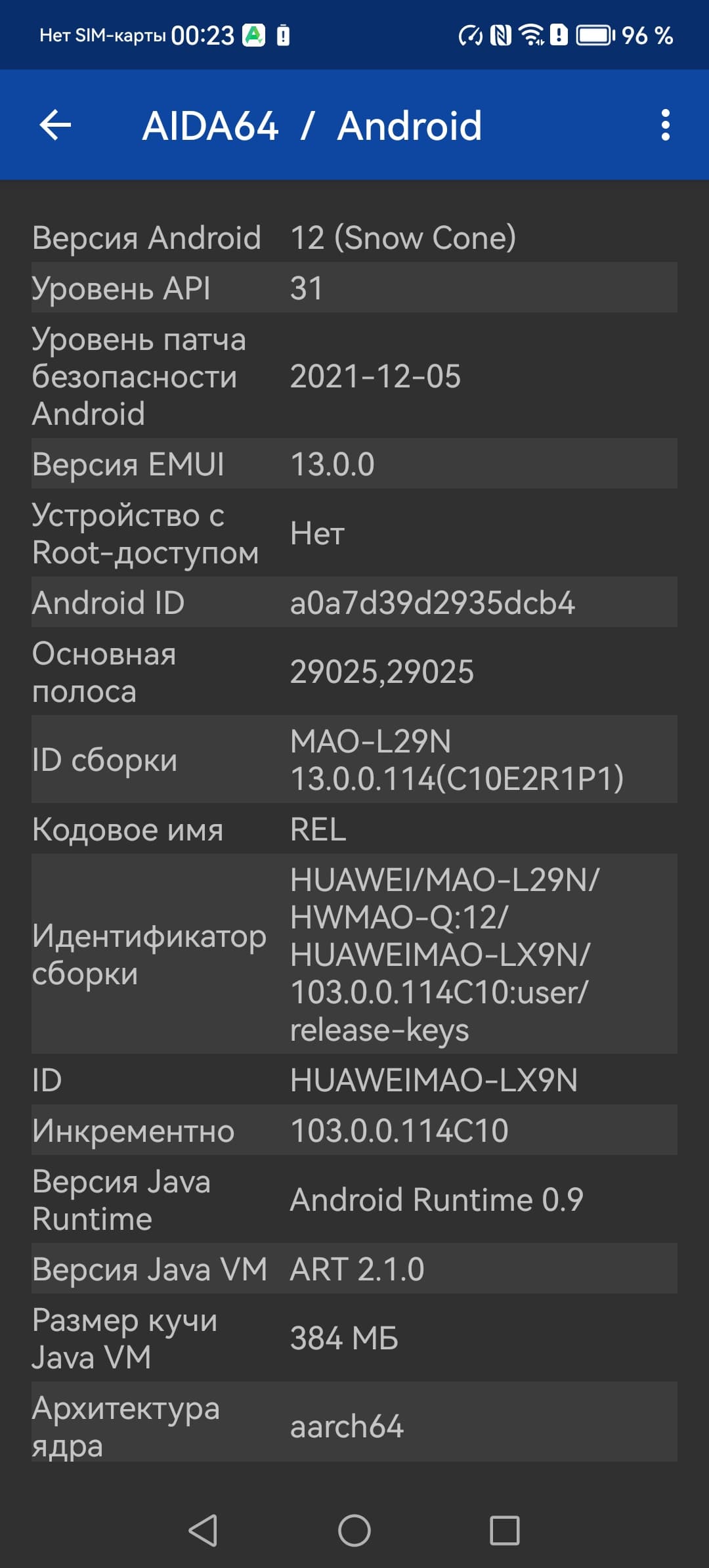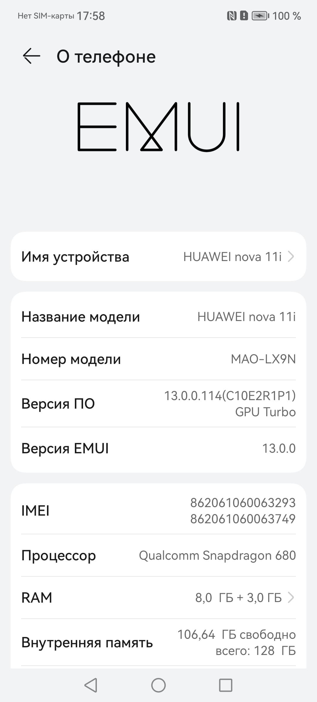 Основные характеристики Huawei nova 11i (модель MAO-LX9)