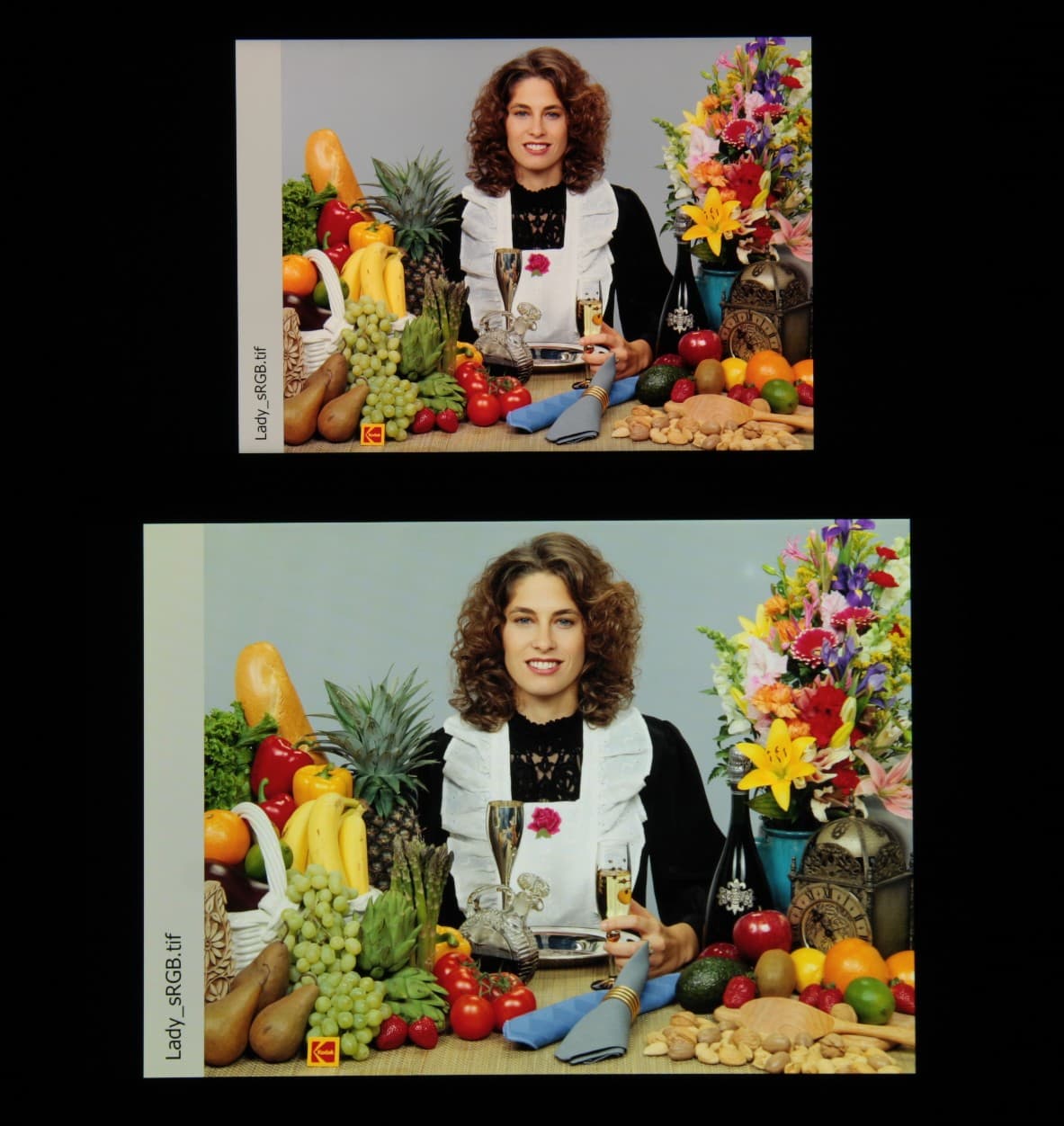 Отметим, что на экранах с широким цветовым охватом (без соответствующей коррекции) цвета́ обычных изображений, оптимизированных для устройств sRGB, выглядят неестественно насыщенными. Отсюда и рекомендация: в большинстве случаев смотреть кино, фотографии и все естественное лучше при выборе профиля Обычные цвета, и только если фотография или видео имеют охват DCI-P3, принятый в цифровом кинематографе и «родной» для топовых устройств Apple, имеет смысл переключить профиль на Яркие цвета.