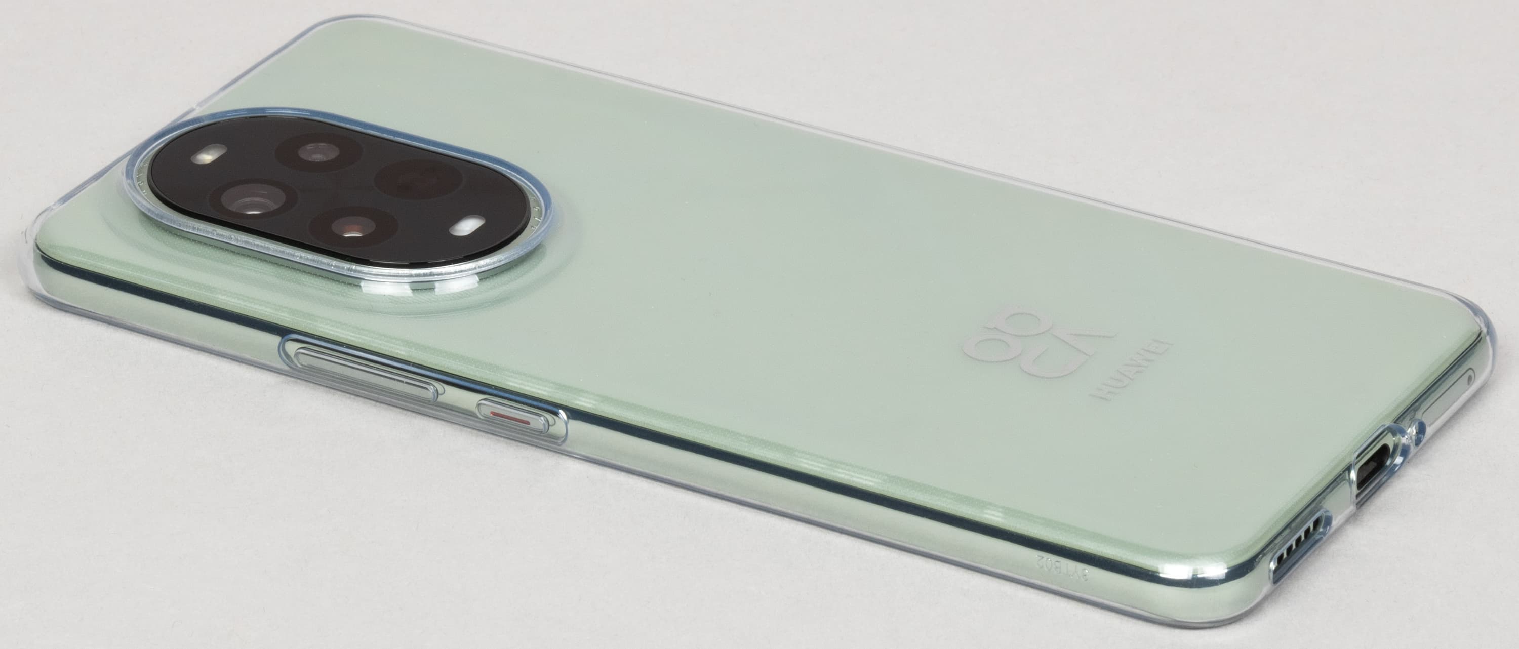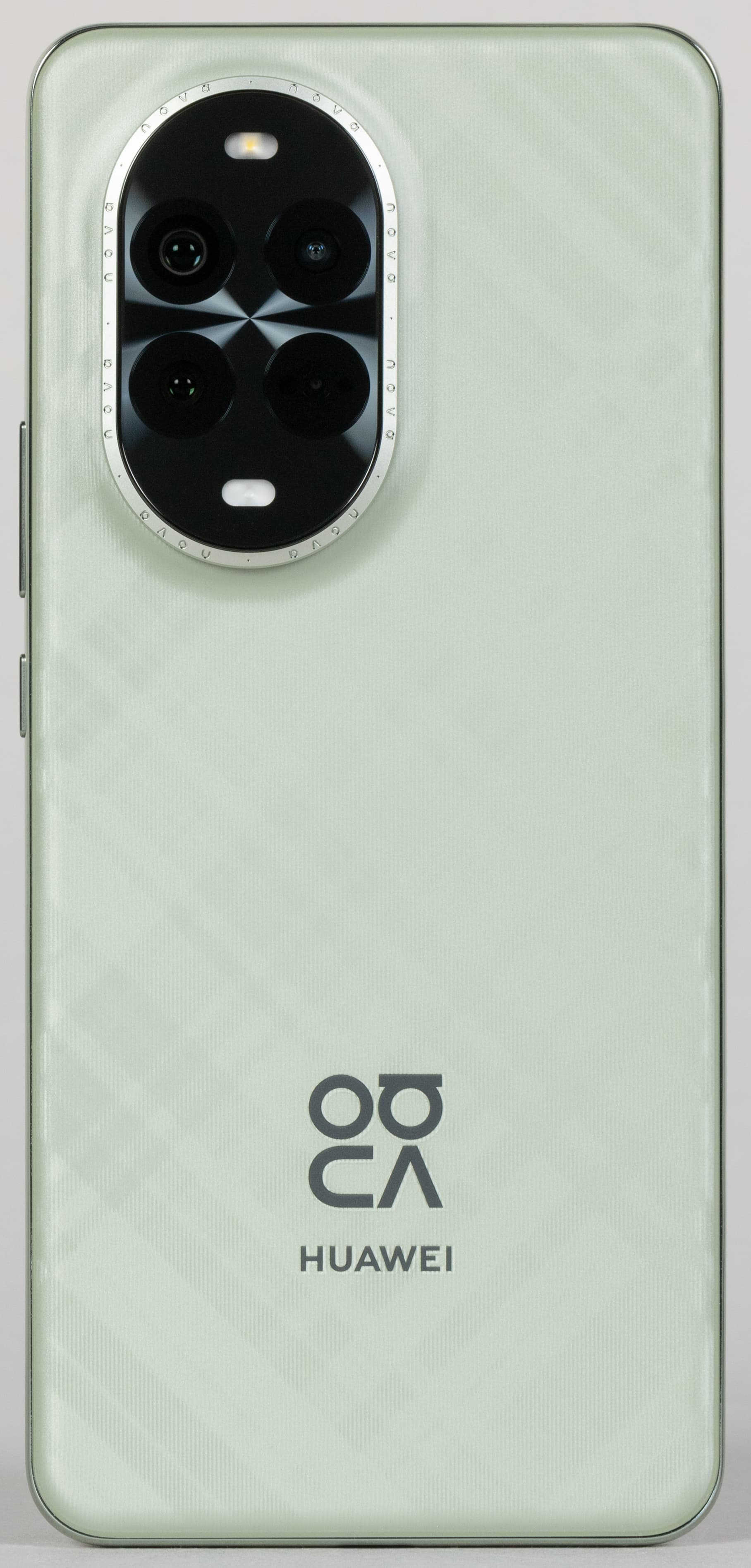У Huawei nova 13 Pro обтекаемый дизайн с покатыми краями передней и задней панелей и скругленной боковой рамкой. Задняя стенка корпуса из пластика оформлена матовым рисунком, напоминающим ткань. Смартфон смотрится стандартно, налет оригинальности вносит лишь овальный выступающий блок с камерами — фирменный элемент серии.