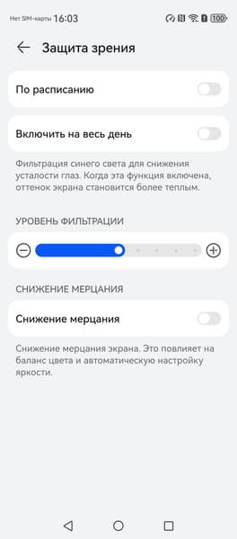 Разумеется есть функция снижения интенсивности синей компоненты. В принципе, яркий свет может приводить к нарушению суточного (циркадного) ритма (см. статью про iPad Pro с дисплеем 9,7 дюйма), но все решается снижением яркости до низкого, но еще комфортного уровня, а искажать цветовой баланс, уменьшая вклад синего, нет абсолютно никакого смысла.