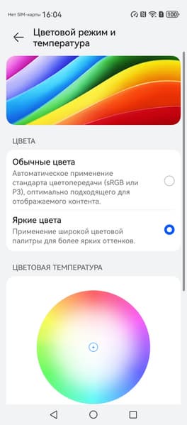 Фотография выше получена при активном профиле Обычные цвета в настройках экрана, всего их два:
